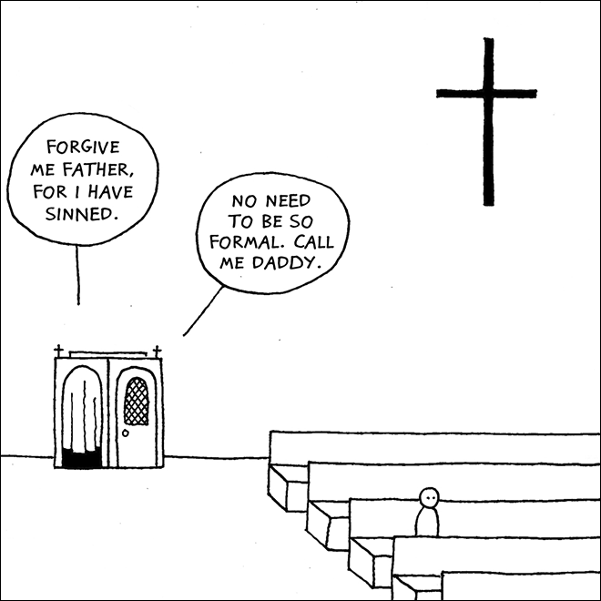 Još jedna karikatura: prikazan je zbunjen čovek u javnoj telefonskoj govornici, a glas iz telefonske slušalice kaže: “Ovde automatska sekretarica Asocijacije za samopomoć pacijentima koji boluju od Alchajmerove bolesti; ako se još uvek sećate zbog čega ste nas nazvali, molimo vas da posle zvučnog signala ostavite poruku.”