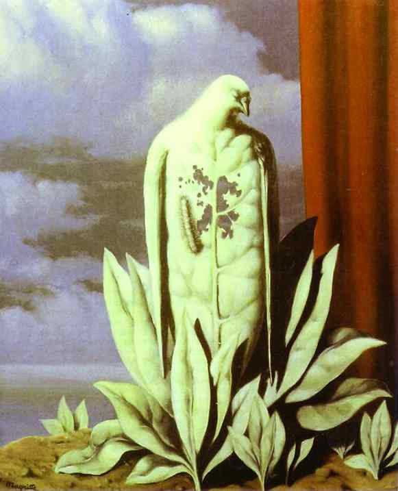 Na jednoj njujorškoj aukciji se 1983. godine pojavila slika ovog belgijskog nadrealiste, vrhunsko umetničko delo naslikano 1948. godine, na kojoj je prikazan preobražaj ptice grabljivice u list kojeg jede gusenica – možda izraz tuge, zbog upravo završenog Drugog svetskog rata, kojeg je Magrit proveo u okupiranoj Belgiji.