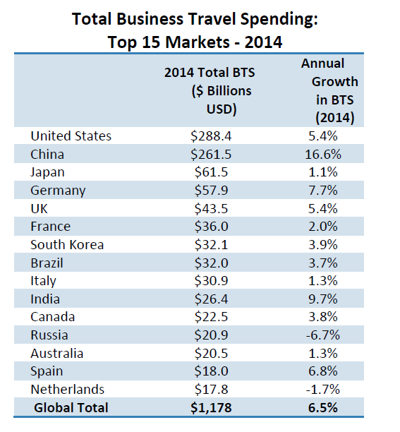 Zemlje koje spadaju u one čija biznis zajednica najviše putuje u odnosu na broj stanovnika skoncentrisane su u Zapadnoj Evropi: Nemačkoj, Danskoj, Belgiji, Norveškoj i Holandiji. Izvan Evrope, zemlje sa najintenzivnijim poslovnim putovanjima su Kanada, Izrael, Singapur i Sjedinjene Države, što je odraz činjenice da oni moraju da pošalju puno mozgova da bi iskoristili svoja raznolika znanja.