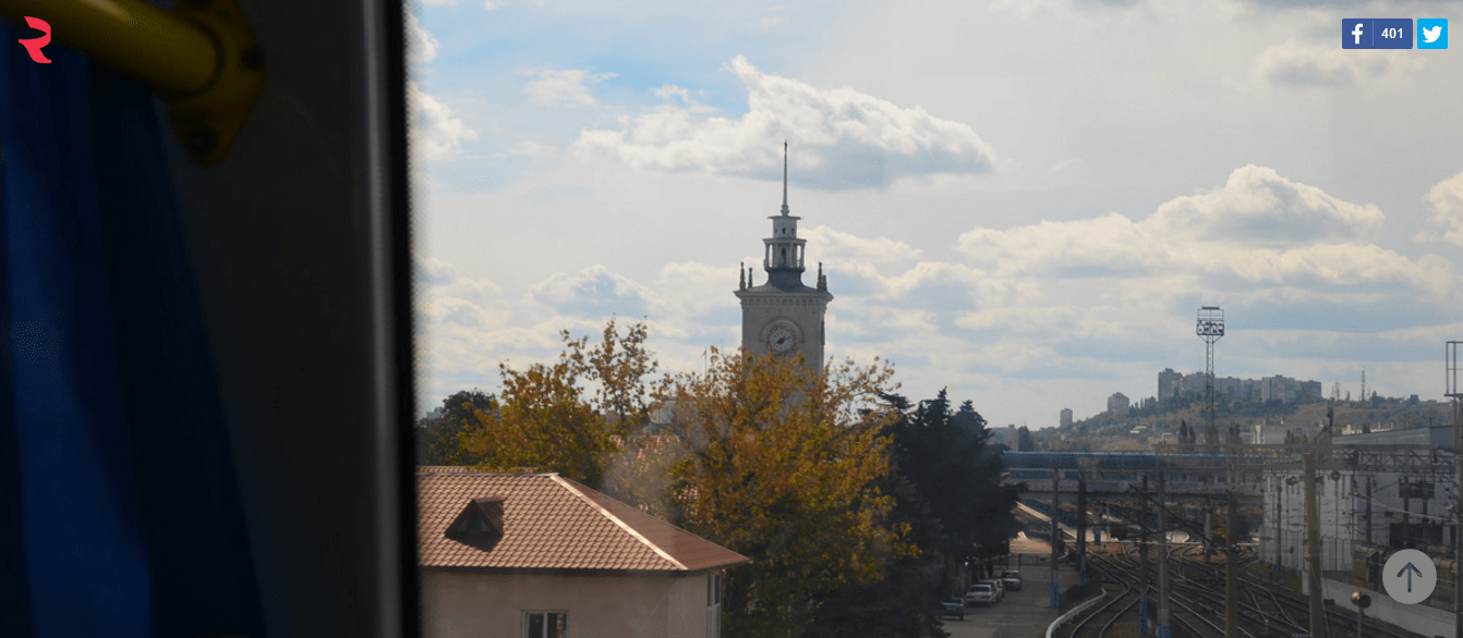 Trolejbus nas vozi kroz glavnu i najdužu gradsku ulicu čiji je naziv Kijevska. Ono što se odmah primećuje je da je Simferopolj grad neočekivano zaodenut sivilom i nedostatkom boja: toliko je šarenila na rascvetanim reklamama, posterima stanovnicima i gradilištima, dok su same zgrade sive. Posvuda se kovitla peščana prašina koju raznosi kasni jesenji vetar. Đaci preko puta nas grickaju belu čokoladu. Trolejbus je prošao kroz centar grada i lagano ulazi u obližnje selo.